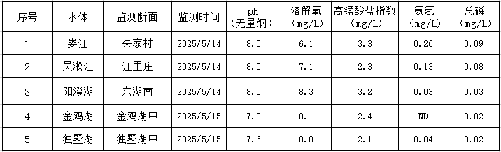 2025年5月蘇州工業園區地表水監測結果