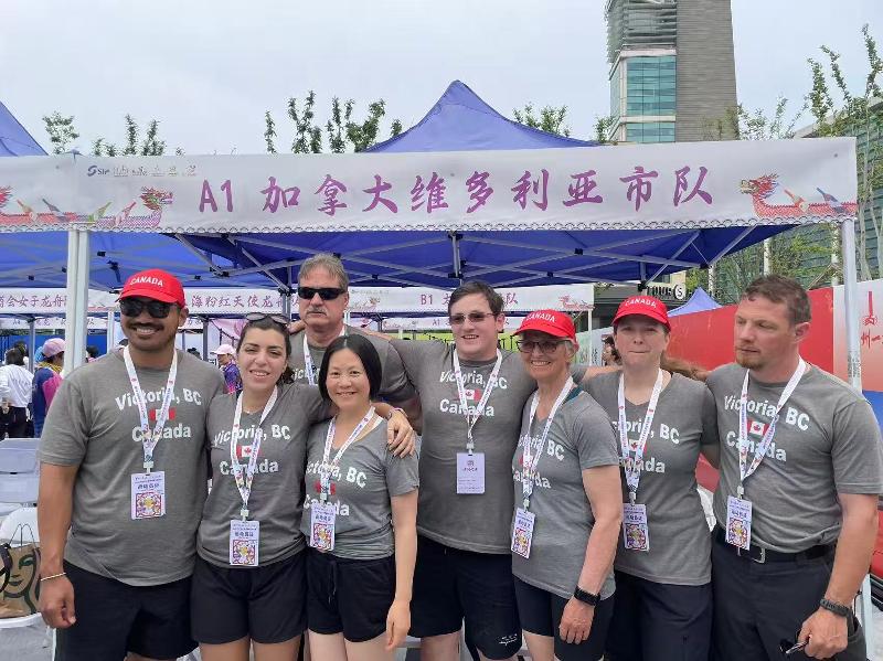 今年是中國與加拿大建交55周年,也是蘇州市與加拿大維多利亞市結為友好城市45周年。一批當地的龍舟愛好者應邀遠道而來,與蘇州市民共度端午。這支臨時組建的隊伍共12人,男女混合。隊員們來自各行各業,最大的70歲,最小的28歲。