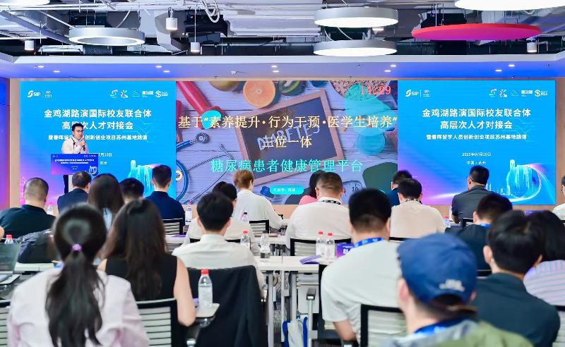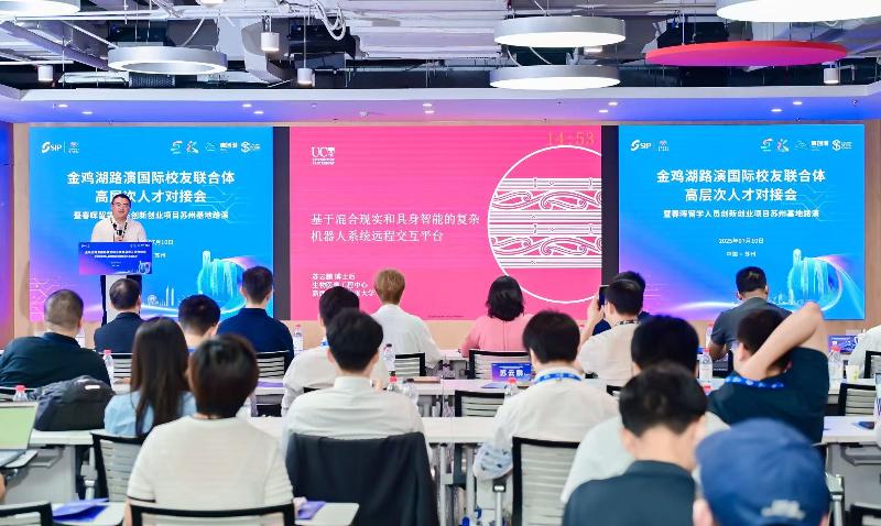 7月10日,2025第十七屆蘇州國際精英創(chuàng)業(yè)周園區(qū)分會場分項(xiàng)活動——金雞湖路演國際校友聯(lián)合體高層次人才對接會暨春暉留學(xué)人員創(chuàng)新創(chuàng)業(yè)項(xiàng)目蘇州基地路演在國際人才港舉辦。八大國際校友組織助陣全球引才,來自7個(gè)國家(地區(qū))的9個(gè)海內(nèi)外博士創(chuàng)業(yè)項(xiàng)目,聚焦人工智能、生物醫(yī)藥、高端制造等戰(zhàn)略新興領(lǐng)域,上演科技創(chuàng)新盛宴,實(shí)現(xiàn)“全球匯智”與園區(qū)產(chǎn)業(yè)發(fā)展需求的精準(zhǔn)對接。