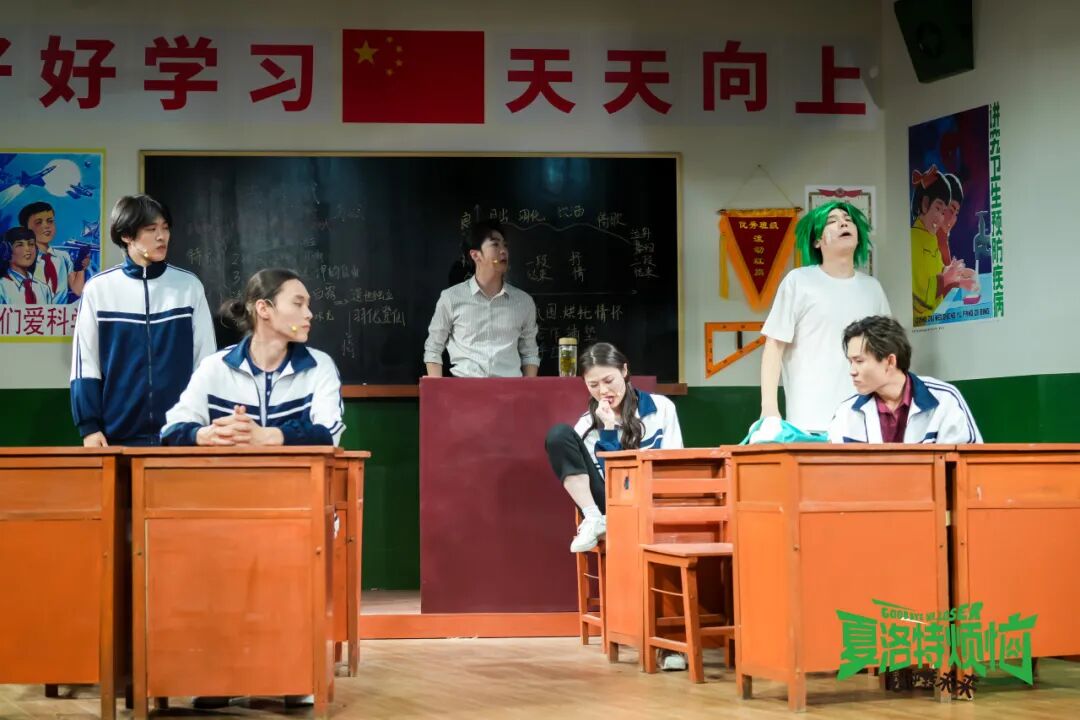 作為亮點之一,演出將觀眾直接置于劇情之中——整個劇場被“模擬”建設(shè)為“西虹市第一中學(xué)”:從懷舊小賣部到教室走廊,演出布景延展到觀眾區(qū),實景細節(jié)遍布劇場內(nèi)外。每一位觀眾憑“入學(xué)通知書”入場,在入座時便已成為“三年二班”的一員。演出過程中,演員的表演區(qū)域與觀眾席之間的界限被打破——王老師的提問可能突然落在某位觀眾身上,夏洛的窘境或許就在鄰座上演。每場隨機掉落的“秋雅位”更將為幸運觀眾帶來專屬互動橋段,讓人真正置身于歡笑與回憶交織的青春現(xiàn)場,打造獨一無二的觀劇體驗。