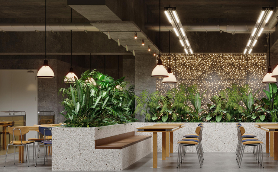 創食意美食城以為周邊上班族提供全新的一站式餐飲與生活解決方案為目標,致力于構建“工作與生活無縫銜接”的新型服務場景。美食城突破傳統食堂單一功能,通過暖色調照明、弧形吧臺、休閑卡座等設計,打造兼具實用性與美學價值的復合空間。